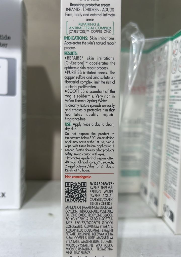 ترکیبات کلیدی آن که با تکنولوژی پیشرفته فرموله شده و از نظر بالینی ثابت شده که روند بهبودی را 2 برابر تسریع می کند، شامل یک کمپلکس C+-Restore، یک مجموعه سولفات مس-روی برای ریکاوری، و آب چشمه حرارتی از Avene برای تسکین، لطافت و آرامش پوست است. کرم سیکالیفت اون غیر کومودوژنیک بوده و منافذ شما را مسدود نمی کند. همچنین بدون عطر، پارابن و بدون الکل است و آن را به جام مقدس برای افرادی با پوست حساس تبدیل می کند. این محصول برای سوختگی، التیام زخم، بثورات پوشک عالی است. دو بار در روز روی پوست تمیز و خشک استفاده کنید.