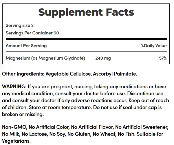 منیزیم گلیسینات با جذب بالای Nature’s Bounty® منبع عالی منیزیم است که از سیستمهای هوشمند بدن شما - از قلب گرفته تا اعصاب، استخوانها و عضلات - پشتیبانی میکند.* تنها دو کپسول در روز، ۲۴۰ میلیگرم منیزیم گلیسینات، نوعی منیزیم با قابلیت جذب زیستی که بدن شما میتواند به راحتی آن را جذب و به طور موثر استفاده کند، فراهم میکند. این مکمل غیر GMO، مناسب برای گیاهخواران است و حاوی گلوتن، لاکتوز، شکر، سدیم یا رنگها و شیرینکنندههای مصنوعی نیست.