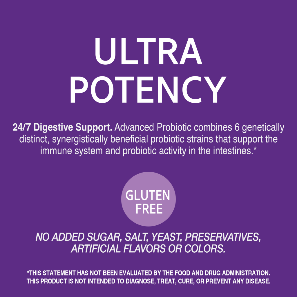 پروبیوتیک پیشرفته، ۶ سویه پروبیوتیک مفید و از نظر ژنتیکی متمایز را که از سیستم ایمنی و فعالیت پروبیوتیکی در رودهها پشتیبانی میکنند، ترکیب میکند.*