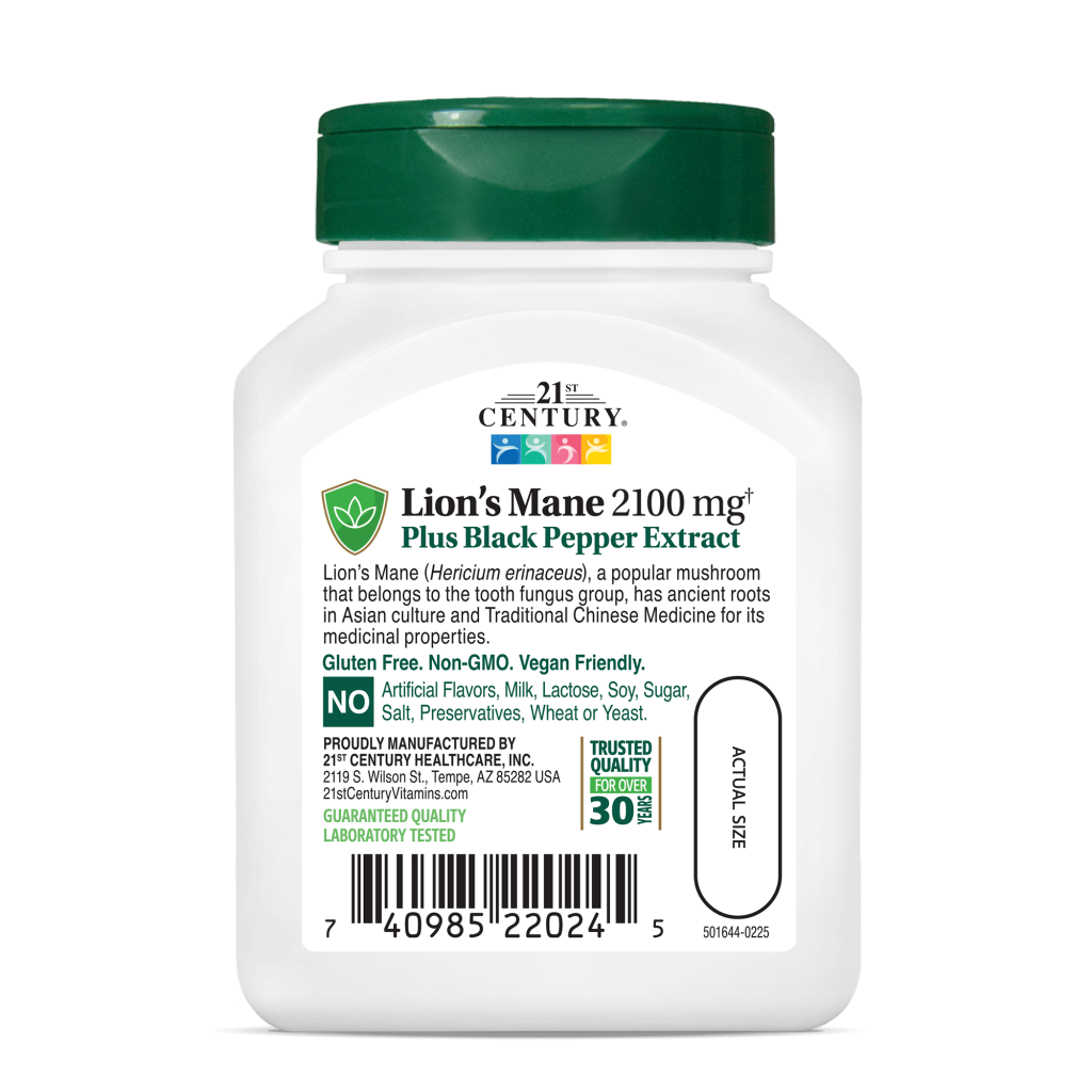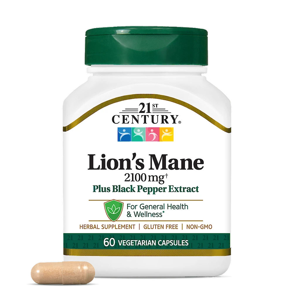 کپسول گیاهی قارچ تقویت سیستم ایمنی بدن 21Century Lion's Mane 2100mg Plus Black Pepper Extract قرن 21 (60 عددی)