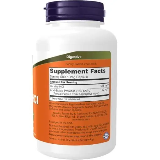 کپسول بهبود عملکرد گوارش بتائین NOW Betaine HCL (120 عددی)